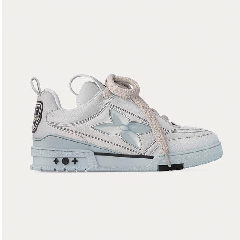 Produzido em couro e camurça premium, o sneaker traz uma silhueta robusta inspirada na cultura do skate, mas com acabamento de altíssimo nível. O clássico monograma LV bordado na lateral e os detalhes em baixo-relevo reforçam a identidade da maison sem exageros.
